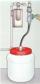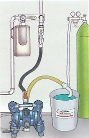 Die Gasleitung wird mit einer PRODORALEM® R6–1 Membranpumpe gefüllt. Die Pumpe wird mit Stickstoff oder Druckluft aus einem Kompressor angetrieben.