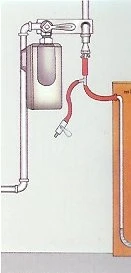 Alle Entnahmestellen werden mit Entlüftungsventilen versehen und an der tiefsten Stelle wird ein Anschlusshahn angebracht. Staub und Schmutz werden mittels Druckluft durch alle Entlüftungsventile schrittweise von oben nach unten ausgeblasen.